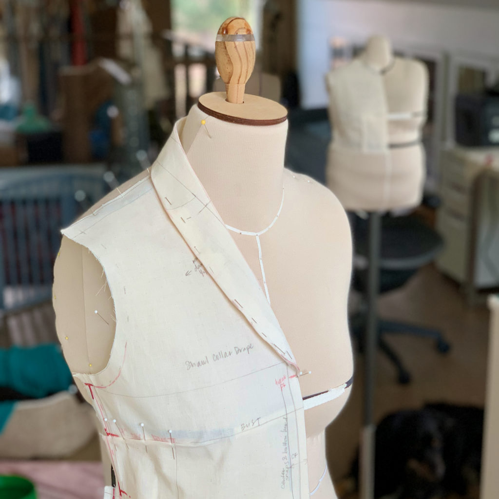 Next up, I needed to create a shawl collar. Instead of buying a pattern with this detail or drafting from measurements, I opted to drape this collar style. Honestly, it’s a heck of a lot faster and I know from the get-go it will fit me and incorporate my original bodice block perfectly.