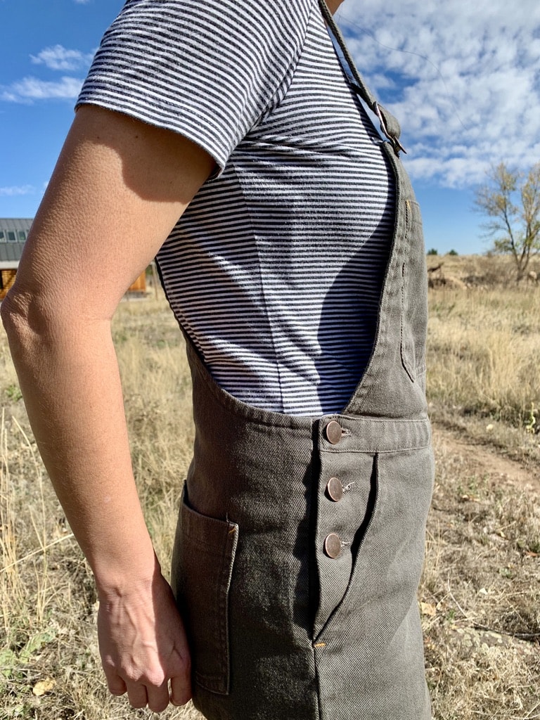 No matter how many times I pre-wash my fabric (mostly cotton and linen), I find my pants/coveralls/overalls still shrink a bit over time. My theory is that there is a lot of vertical length, especially in jumpsuits, so even if it only shrinks a tiny bit per inch, there’s a lot of inches there. And that adds up.
